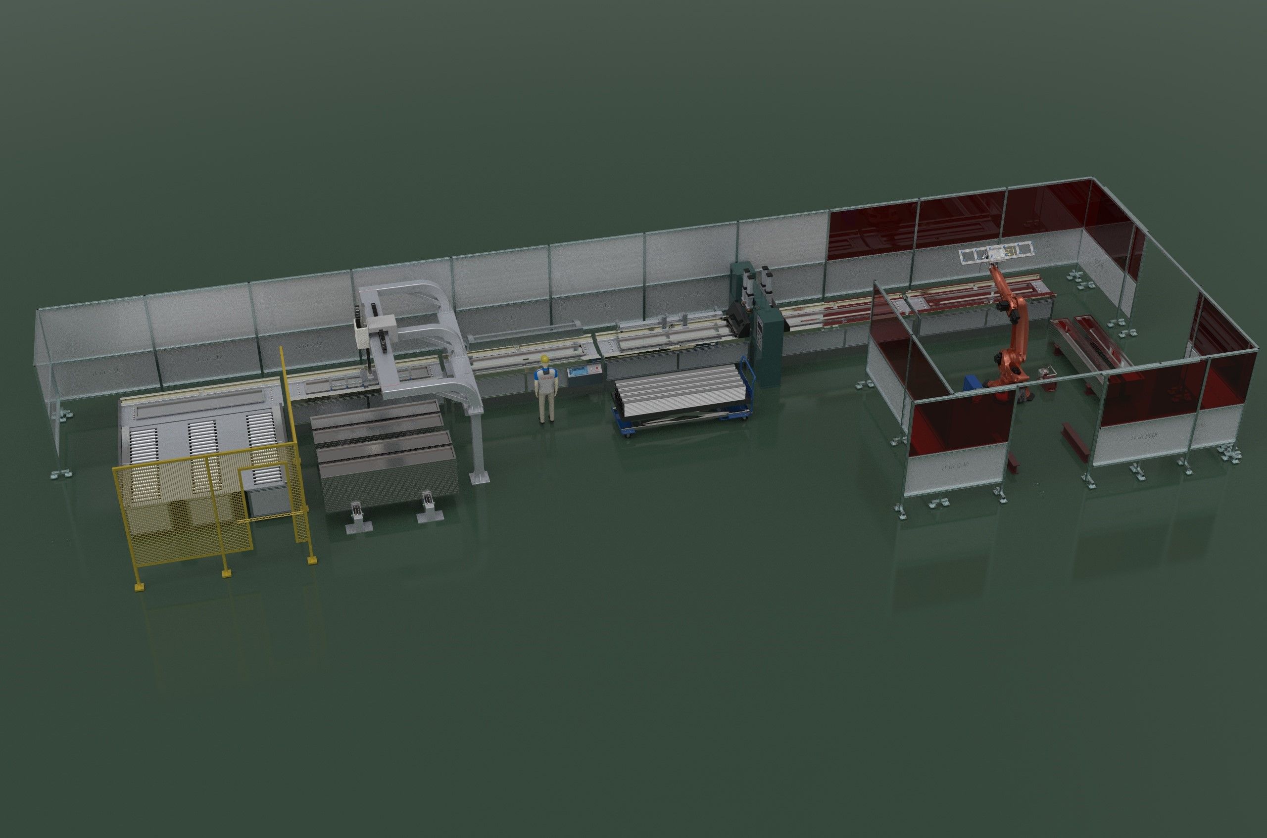 用途:本儀器用于碳鋼層門加強筋放置與焊接的自動化裝配。電梯碳鋼層門裝配自動化流水線,客戶只需將生產(chǎn)任務(wù)單錄入流水線監(jiān)控設(shè)備,提供半成品,從流水線前端流入,流水線末端就能得到完整的總成,具體的流水線過程:半成品層門堆垛在一個指定位置,機器人自動上下料,完成加強筋放置、連接(鉚接、焊接),送到成品區(qū),后面由機器人完成碼垛。該設(shè)備自動連續(xù)完成上料加強筋放置鉚接焊接等作業(yè),取代人工操作,所需人手少(減少75%以上),裝配效率高(全部過程30秒以內(nèi)完成),產(chǎn)成品質(zhì)量穩(wěn)定,節(jié)約大量人工成本,是廣大電梯制造行業(yè)完善質(zhì)量、提高生產(chǎn)效率、增強工作效益的裝備。